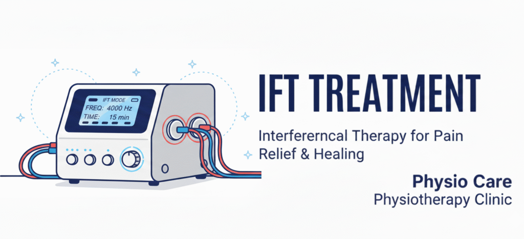 IFT Therapy is one of the most effective physiotherapy treatments for deep muscle and nerve pain. It uses gentle electrical currents to reduce inflammation, relax tight muscles, improve blood circulation, and speed up healing—without medicine or side effects.