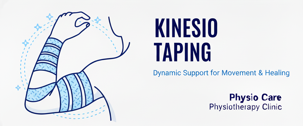 Kinesio Taping is a modern physiotherapy technique in which elastic therapeutic tape is applied to support muscles and joints without restricting natural movement. At PhysioCare Physiotherapy Clinic, we use high-quality, skin-friendly tapes to reduce pain, improve posture, enhance performance, and assist in faster recovery from injuries.