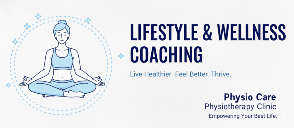 Lifestyle & Wellness Coaching focuses on improving your overall well-being by helping you adopt healthier habits, manage stress, improve fitness, and build a balanced lifestyle. At PhysioCare Physiotherapy Clinic, our physiotherapists and wellness experts guide you step-by-step to achieve long-term health, better energy, improved posture, and a more active life.